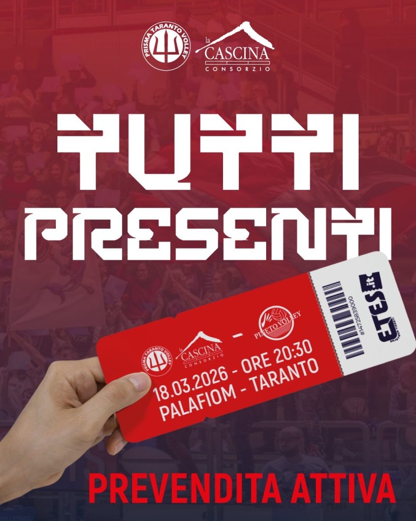 Prisma La Cascina Taranto Volley comunica che dalle ore 9:00 di oggi è attiva la prevendita dei tagliandi relativi all’incontro valevole per l’11^giornata di ritorno Serie A2 Credem Banca 2025\26 contro Abba Pineto. L’incontro si terrà mercoledi 18 marzo alle ore 20.30 presso il Palafiom. I tagliandi saranno acquistabili presso i punti vendita etes o…